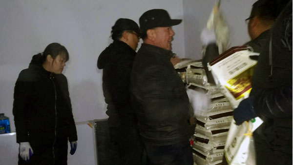 合理分組、各負其責、整齊有序,大米在工作人員手中傳遞,心手相傳的不僅僅是大米,更是信心和意志。